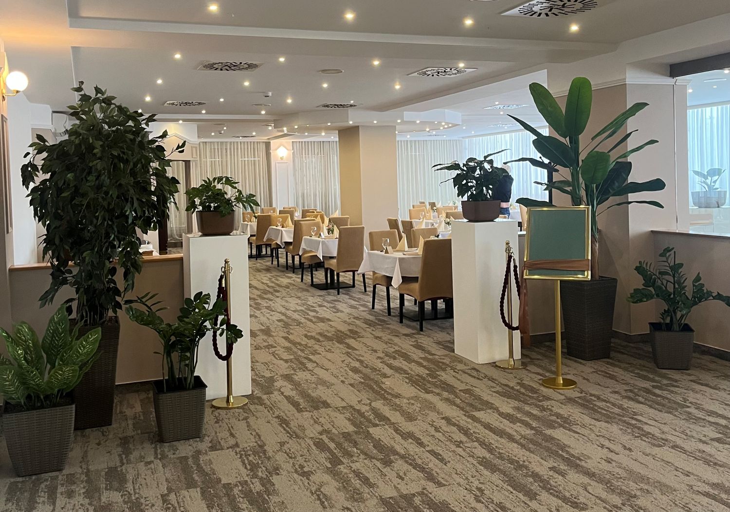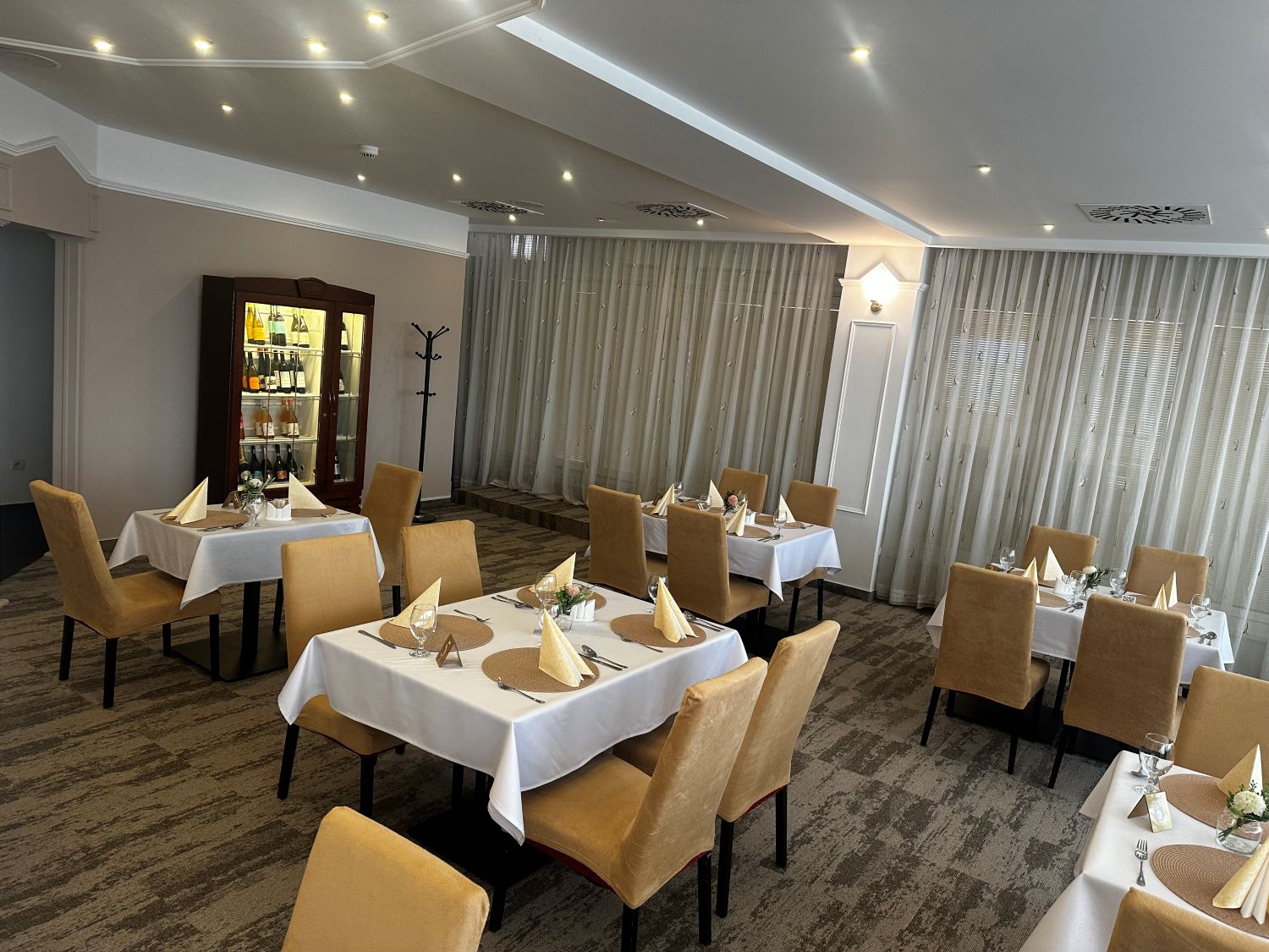 Štýlovo zariadená reštaurácia s klimatizáciou a príjemným osvetlením poskytuje návštevníkom vynikajúcu kuchyňu s profesionálnou obsluhou.